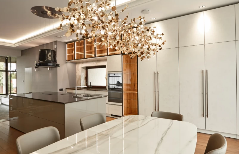 Upravo ovakvi materijali unose novu dimenziju u dizajn kuhinje. Krajnji utisak zavisi od pažljivo odabranih detalja. Ručke na vratima, pločice ručne izrade, zidne obloge, lampe u Art Nuvo stilu čine da kuhinja postane jedinstven prostor, u kojem estetika ima ravnopravnu ulogu sa funkcijom.