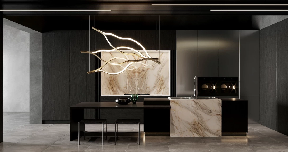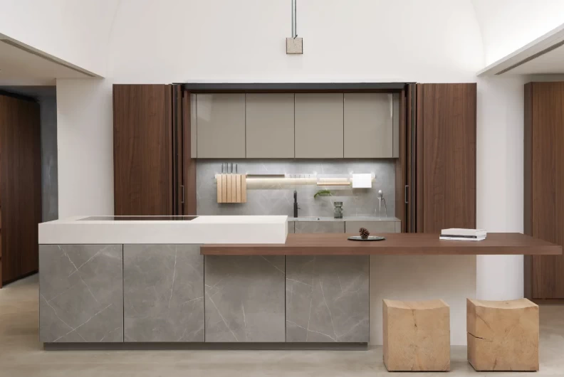 Tople nijanse mermera i prefinjeni detalji — savremeni izraz kuhinje LEICHT