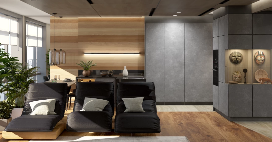 U projektovanju kuhinja LEICHT koristi koncept celovitosti i ravnoteže. Visoki kuhinjski elementi poput polica koriste celu visinu prostora do plafona. Klizna vrata i vitrine daju jednostavan, ali snažan izraz. Tradicionalne viseće elemente zamenjuju otvorene, svedene police koje unose lakoću i prozračnost. Ovaj način projektovanja u potpunosti prati filozofiju minimalizma. Prostor je funkcionalan, dizajn je nenametljiv, sve se prirodno prožima i živi sa svakodnevnicom.