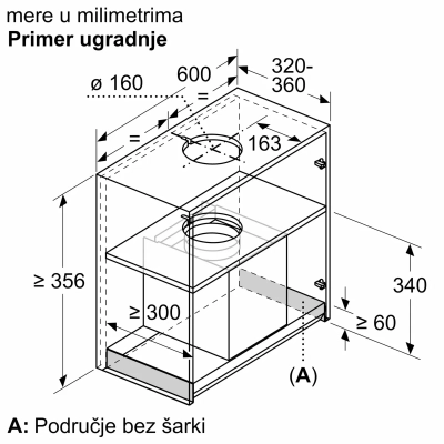 - Ugradne dimenzije (VxŠxG): 340 x 560 x 300 mm