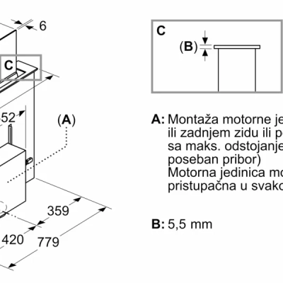 | Visina izduvnog vazduha uređaja min | 709 mm |