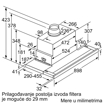 | Visina uređaja sa recirkulacijom max | 378 mm |