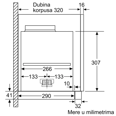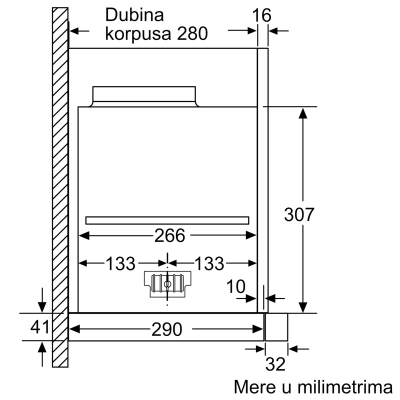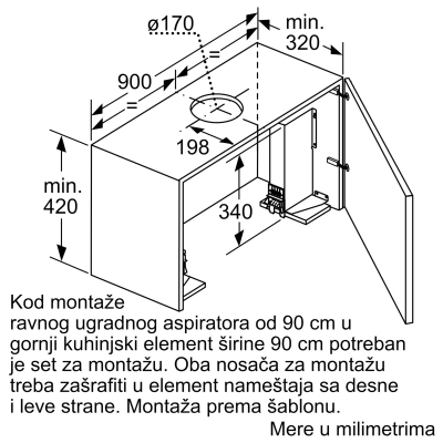 | Minimalno rastojanje iznad plinske ploče za kuvanje | 650 mm |