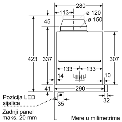 | Minimalno rastojanje iznad električne ploče | 430 mm |