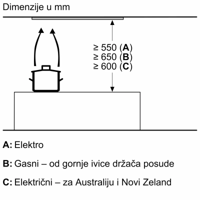 - Osvetljenje ploče za kuvanje: 2 x 1 W LED osvetljenje