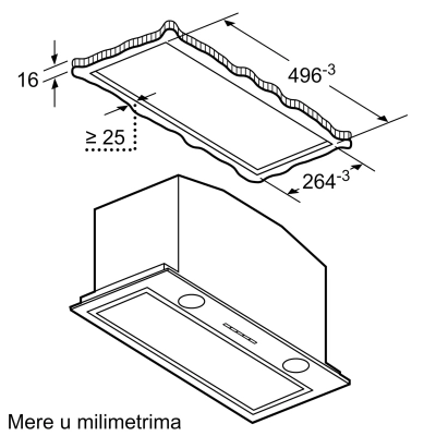 - Ugradne dimenzije (VxŠxG): 418 x 496 x 264 mm