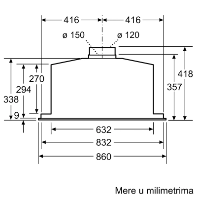 - Ugradne dimenzije (VxŠxG): 418 x 836 x 264 mm