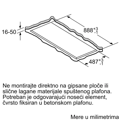 - Ugradne dimenzije (VxŠxG): 299 x 888 x 487 mm