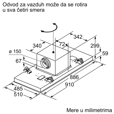 - Dve mogućnosti delovanja: odvođenje vazduha ili kruženje vazduha (potrebno dokupiti komplet za recirkulaciju)