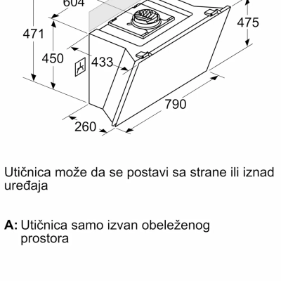 - Dimenzije kod ugradnje u režimu za recirkulaciju, bez dimnjaka (VxŠxD): 471mm x 790 x 433