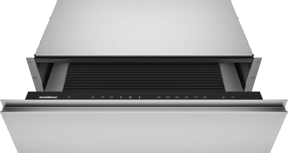 - Elevate the kitchen with a warming drawer that features a pristine stainless steel finish and a sleek glass bottom. This refined interior design ensures effortless cleaning. The combination of elegance and practicality guarantees a hygienic, easy-to-maintain surface for every culinary task.