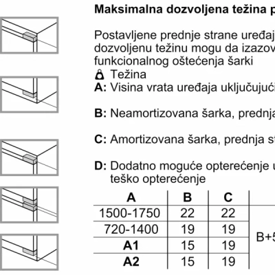 - Broj polica za odlaganje na vratima: 4, od toga 1 pregrada za puter / sir