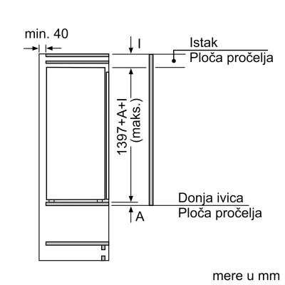 - Ugradne dimenzije (V x Š x D): 140 x 56 x 55 cm