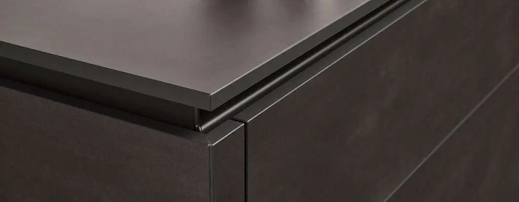 MINERA front je obrađen melaminskim premazom, sa super mat završnim slojem koji izgleda sofisticirano, i prijatan je na dodir. Jednostavan je za korišćenje i ne ostavlja trag od otisaka prstiju. U okviru ove LEICHT kuhinje sto RONA je ukrašen dekorativnim printom cveća, dok su ivice zaobljene i obložene debljom trakom za dodatnu čvrstinu i estetiku.