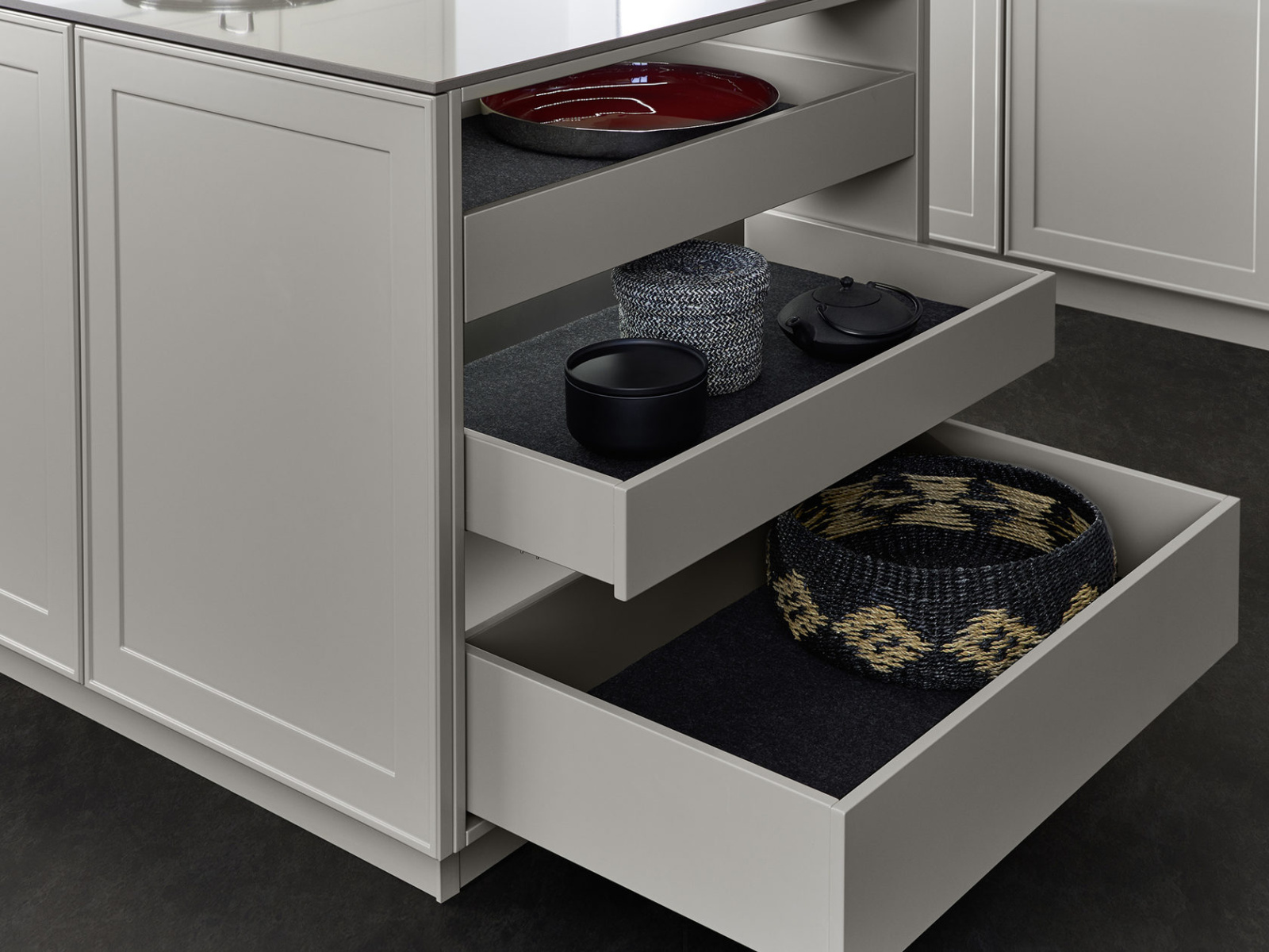 Materijali u kombinacijama sa toplim nijansama boja stvaraju snažan utisak i stoje u savršenoj harmoniji. Paleta Les Couleurs® - Le Corbusier, ekskluzivno dostupna za LEICHT, nudi 15 pažljivo odabranih nijansi boja koje omogućavaju prefinjeno planiranje prostora. Rezultat je upečatljiv, smiren enterijer, u kome je kuhinja srce doma.