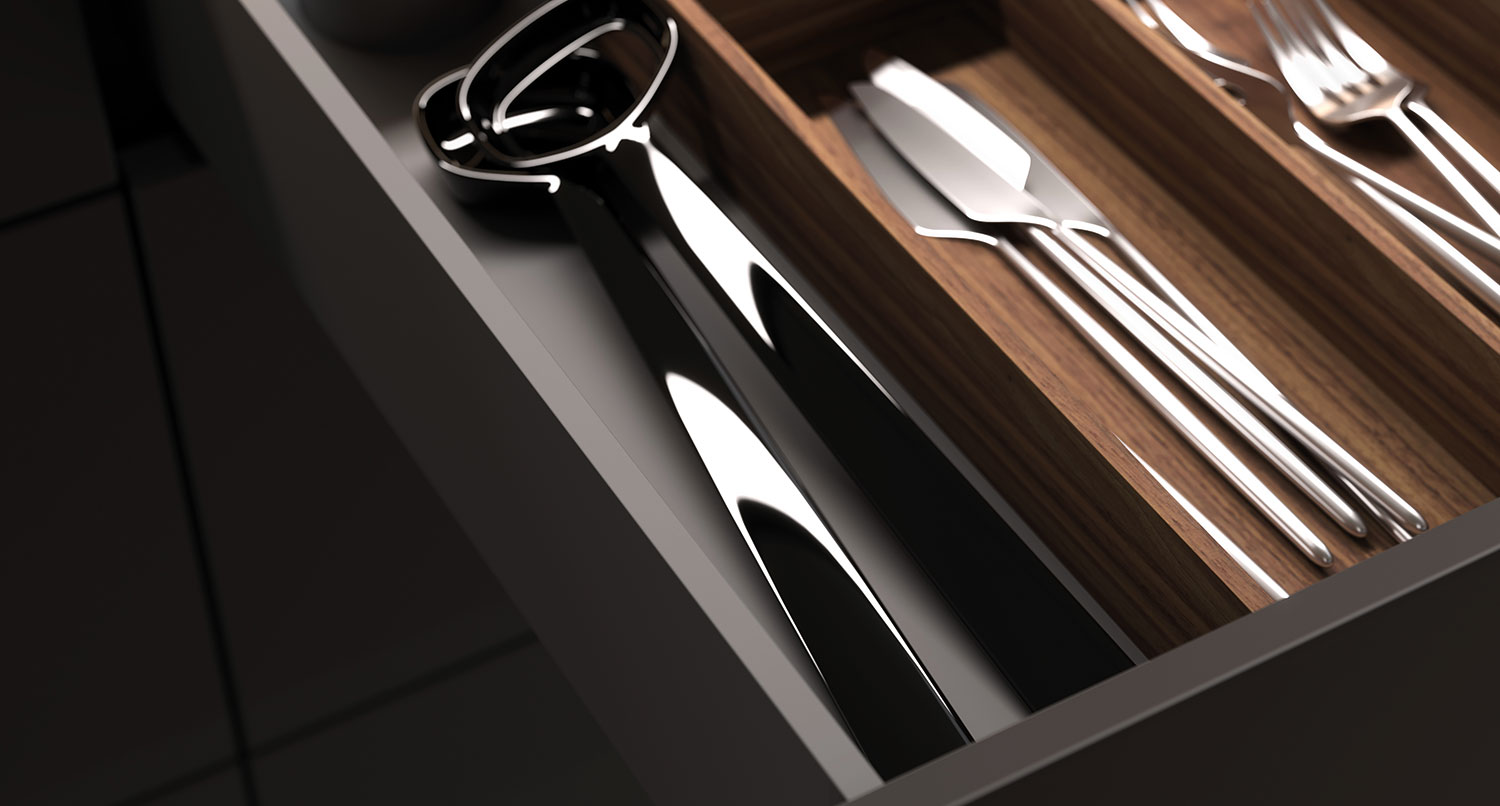 U LEICHT kuhinji funkcija nikada ne zaostaje za estetikom. Zato su BOSSA frontovi opremljeni dodatnim sistemima za unutrašnju organizaciju, koji omogućavaju da svaki komad pribora ima svoje mesto i uvek bude nadohvat ruke. Sve je promišljeno – od rasporeda, preko ergonomije, do savršene pristupačnosti.