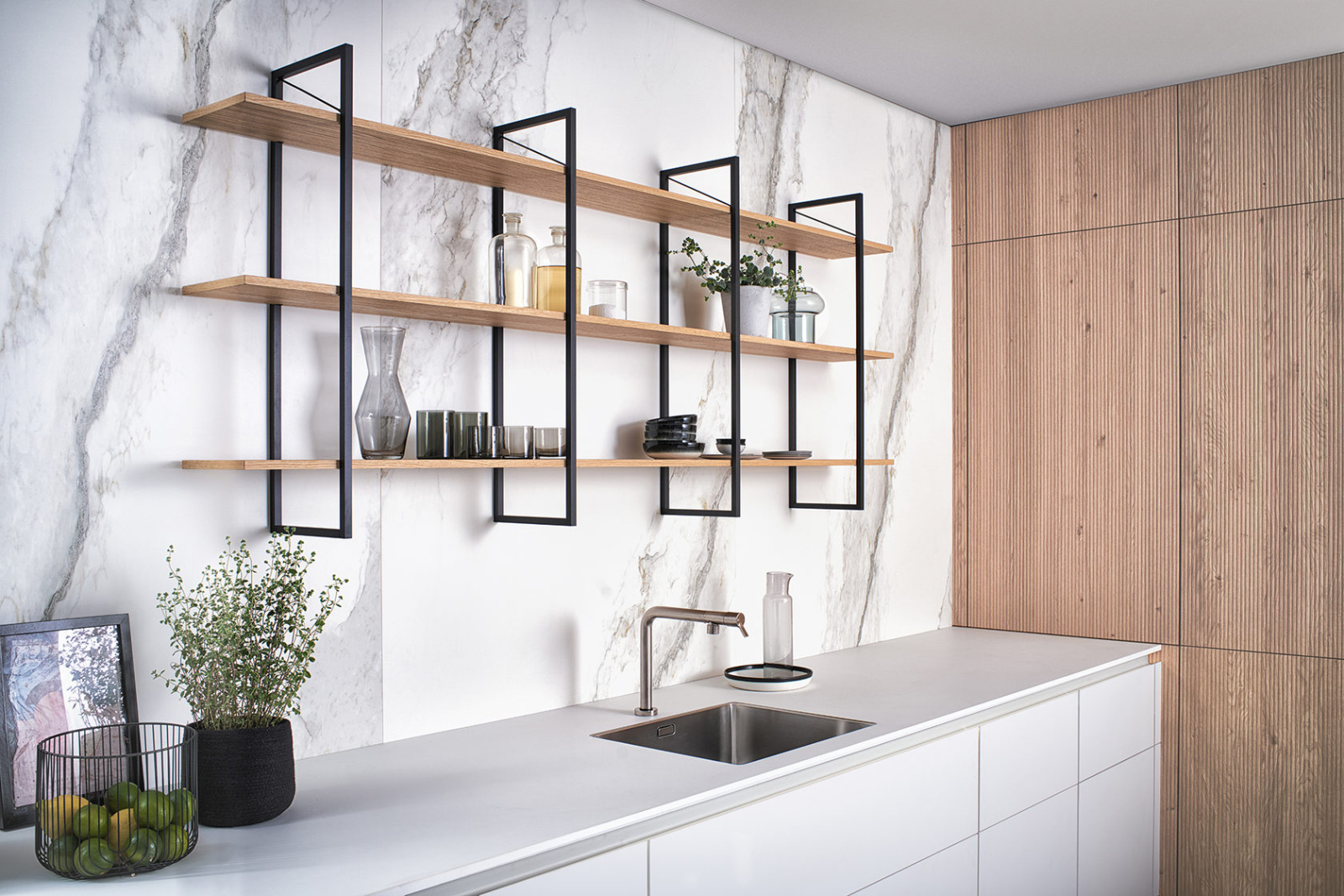 - kao zidna polica, koja se može samostalno dizajnirati ili kombinovati sa gornjim kuhinjskim elementima,