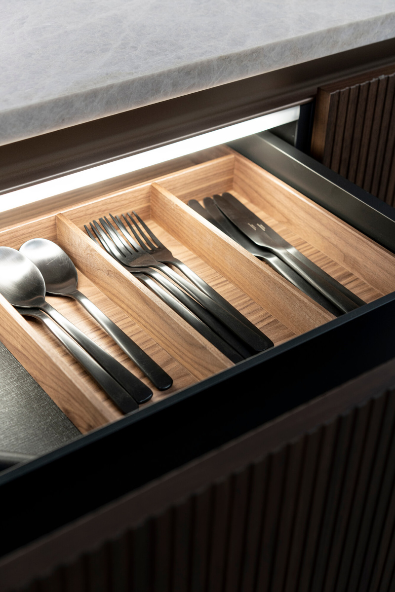 Otvoreni plan prostora pruža osećaj prostranosti i mira. Pažljivo projektovano zoniranje omogućava da se i u najotvorenijim enterijerima pronađe lični kutak sa posebnom namenom. Funkcionalne zone u ovom enterijerskom rešenju su nezavisne, ali nikada odvojene. Svaka zona ima svoju svrhu, a ujedno deluju kao deo veće, skladne celine. U ovom pažljivo osmišljenom rasporedu, svaka zona ima svoju ulogu: prostor za kuvanje, prostor za druženje, mesto za predah. Kuhinja je oduvek predstavljala središte svakog doma.Ovde se okuplja, inspiriše zajedništvo i omogućava da svakodnevni život teče spontano, prirodno, bez prepreka. U ambijentu ove LEICHT kuhinje, kuvanje postaje uživanje, a boravak u prostoru pravo zadovoljstvo.