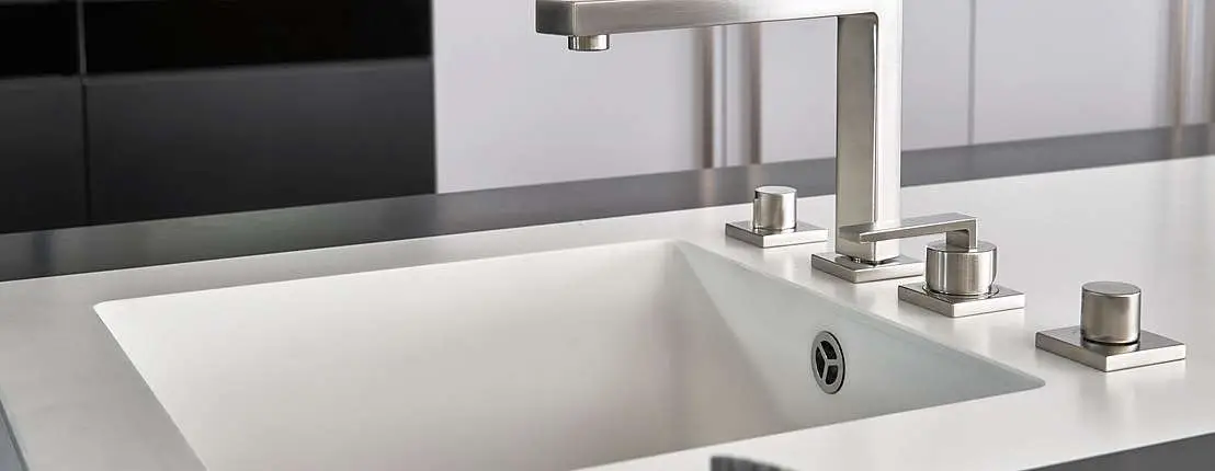 Centralni element ove kuhinje je ostrvo raskošnih dimenzija, koje uprkos svojoj masivnosti deluje lagano zahvaljujući belim linijama koje se poput meandra protežu po ivicama, definišući i naglašavajući funkcionalne zone kuvanja i pripreme hrane.