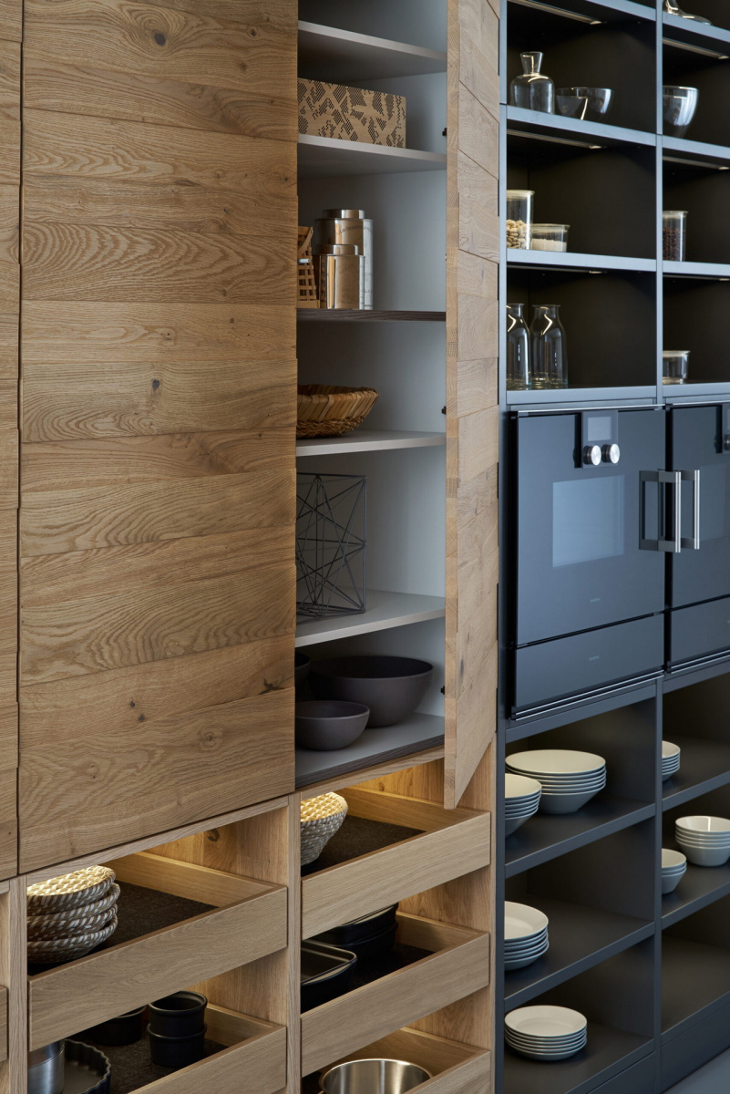 U ormare je ugrađena bela tehnika nemačkog brenda Gaggenau serije 200. Zanosna estetika jedna je od glavnih karatkeristika Serije 200: ona se priljubljuje uz površinu, a ručice odgovaraju uređajima za hlađenje Serije 200. Ove rerne takođe koriste karakteristične čvrste upravljačke tastere od nerđajućeg čelika i TFT ekran. Možete kontrolisati do 13 metoda grejanja do 300 stepeni i jačinu pečenja kao u pećima od opeke. Sve rerne Serije 200, uključujući kombinovane parne i mikrotalasne rerne, dostupne su u 3 boje: Gaggenau antracit, metalik i srebnoj boji. Širine su 60 cm sa neograničenim mogućnostima; Rerne Serije 200 omogućavaju pametno povezivanje u koncept pametne kuće i mogu se daljinski kontrolisati, nadgledati i dijagnostifikovati. Kombinovane parne rerne i kombinovanie-mikrotalasne rerne mogu se upariti sa grejnim i vakuum fiokama ili automatskom mašinom za espreso za maksimalni vizuelni i kulinarski efekat.