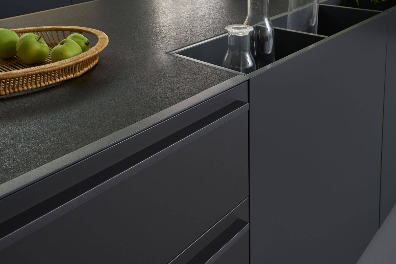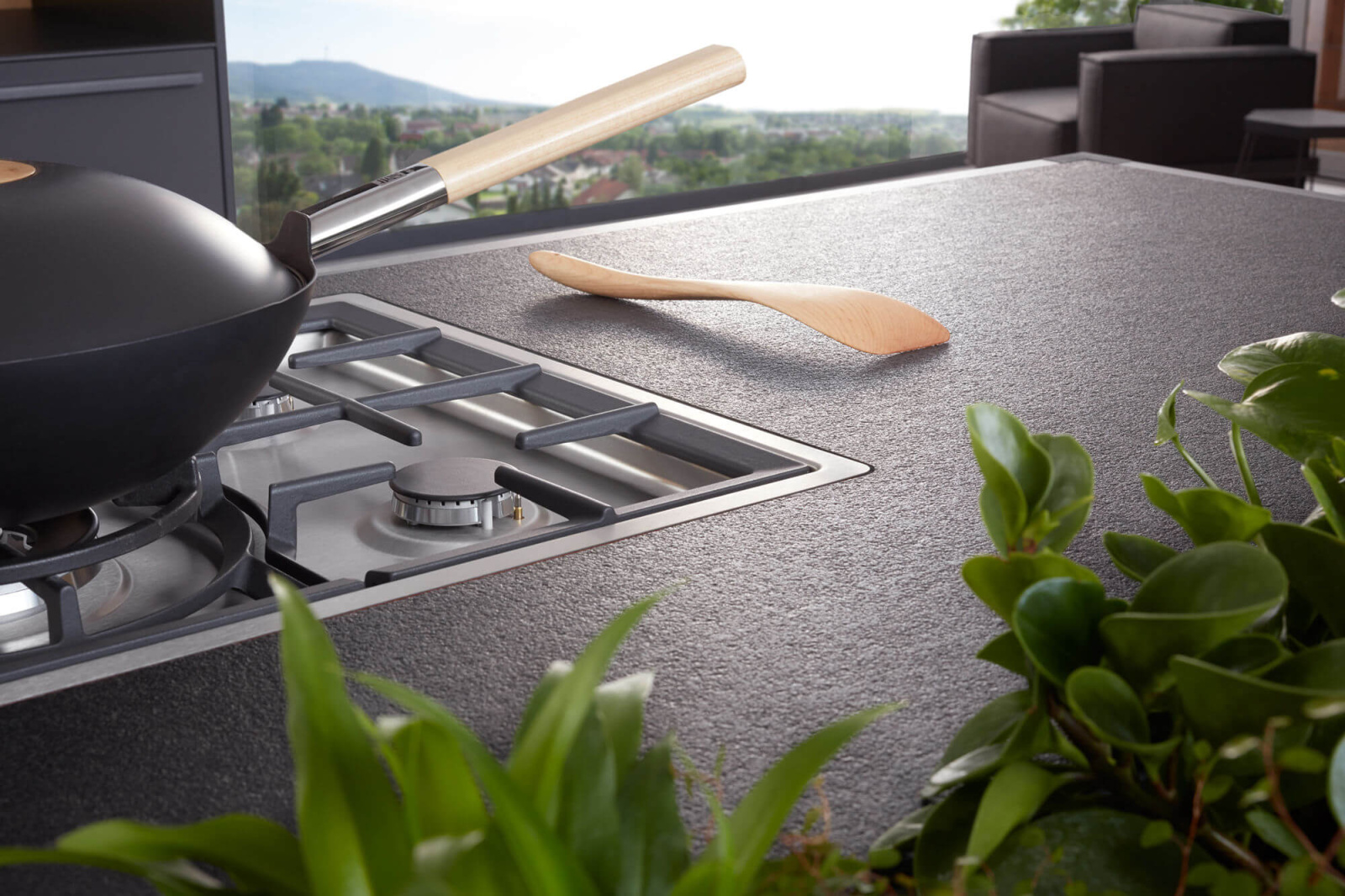 Površina stola i zidne obloge izrađene su od istog materijala kao i radna ploča i front VALAIS. Ovim se postiže harmoničan spoj kuhinjskog ostrva, visokih kuhinjskih elemenata i radnog prostora koji svojom lepotom i funkcionalnošću stvaraju modernu kuhinju LEICHT izuzetne forme i dizajna.