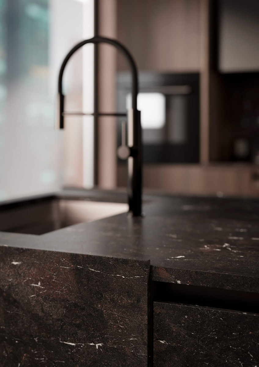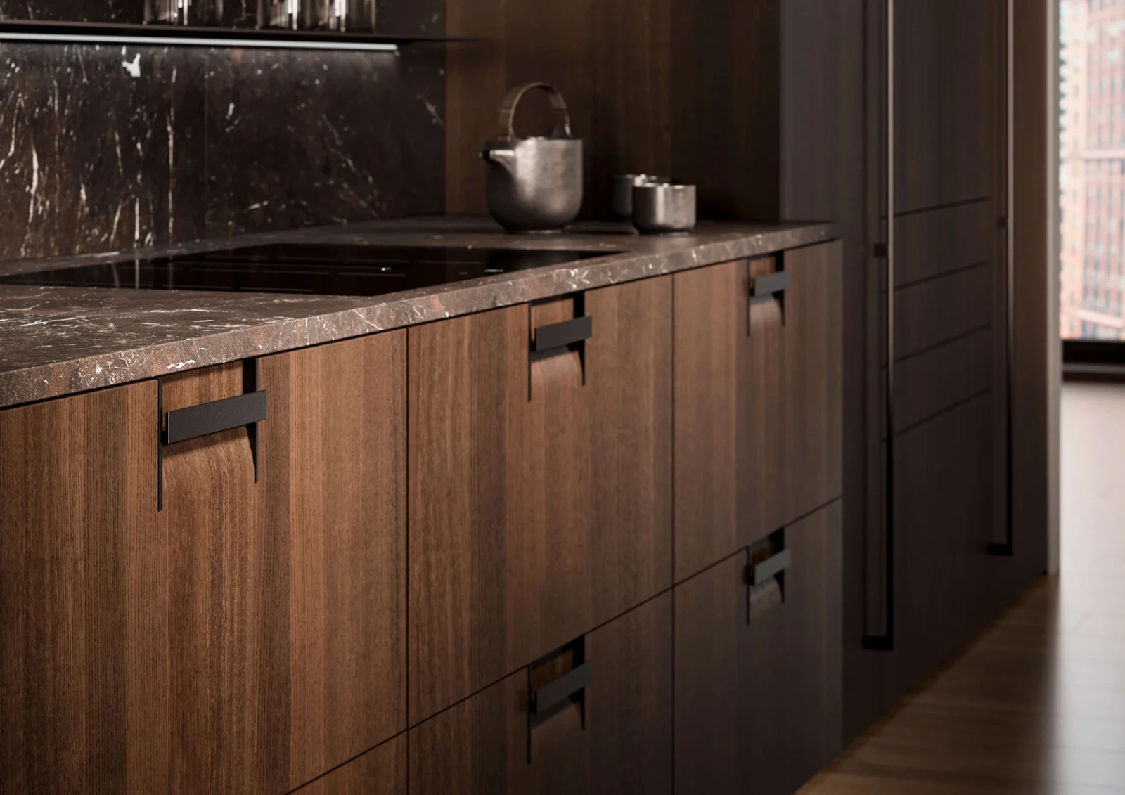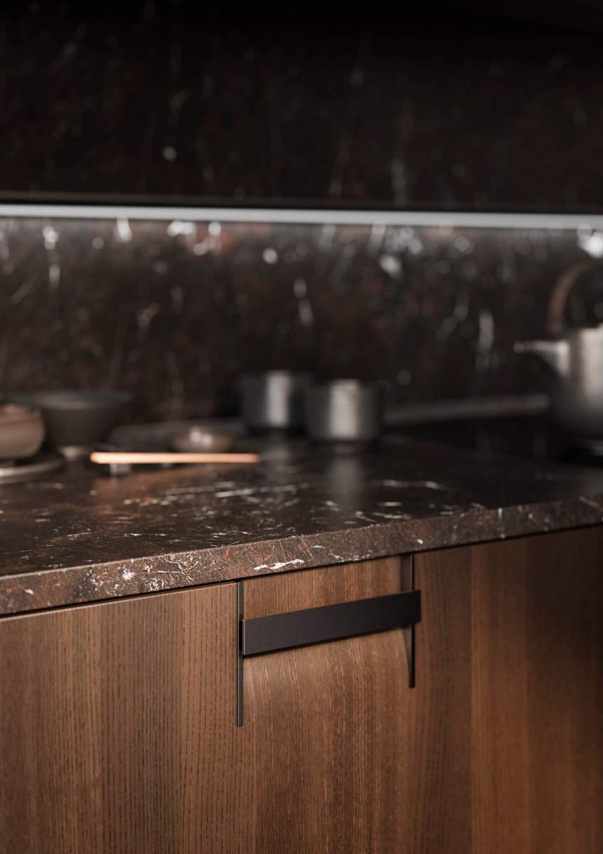 LEICHT kuhinja i kolekcija 276 TERMA u nijansi 360v MARAVAL kestena donosi sofisticiranu toplinu i prirodnu eleganciju u svaki prostor. Ovaj harmoničan ton savršeno naglašava autentičnost drveta, stvarajući prijatan i opušten ambijent. U kombinaciji sa ručkom u boji 417 čelik crna, kuhinja dobija moderan i stilizovan izgled, gde se toplina prirodnih materijala susreće sa industrijskom elegancijom. Ovaj spoj detalja čini svaki element savršeno uklopljenim u celinu, pružajući ne samo estetsku već i funkcionalnu harmoniju.